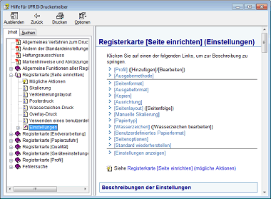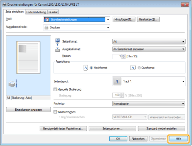 Sie können die Online-Hilfe durch Klicken auf [Hilfe] auf dem Druckertreiber-Bildschirm anzeigen.