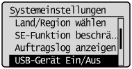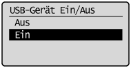 ], um <USB-Gerät Ein/Aus> hervorzuheben, und drücken Sie dann [OK].