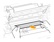Wenn die Führungskante herauskommt, halten Sie das gestaute Papier an beiden Seiten fest, und ziehen Sie es vorsichtig heraus.
