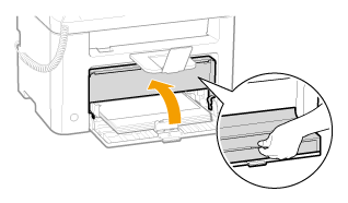 Legen Sie das Papier wieder in die Papierkassette ein, und senken Sie die Staubschutzabdeckung ab.
