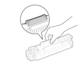 Schütteln Sie die Tonerpatrone vor dem Austausch.Wenn der Toner in der Patrone nicht gleichmäßig verteilt ist, kann dies zu einer verminderten Druckqualität führen.