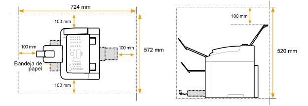 (si utiliza la máquina durante mucho tiempo o imprime muchas hojas en una estancia mal ventilada, el ozono y otros olores generados por la máquina podrían crear un entorno de trabajo desagradable. Además, durante la impresión se dispersan partículas químicas; por lo tanto, es importante disponer de una ventilación adecuada. Evite asimismo lugares en los que el personal pudiera verse expuesto a las emisiones de la máquina). |