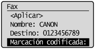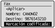 ] o [ ] para resaltar <Marcación codificada> y, a continuación, pulse [OK].![]() |