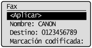 ] o [ ] para resaltar <Aplicar> y, a continuación, pulse [OK]. |