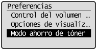 ] para resaltar una operación a la cual desee aplicar el modo de ahorro de tóner y, a continuación, pulse [OK].