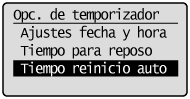 ] para resaltar <Tiempo reinicio auto> y, a continuación, pulse [OK].