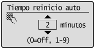 Defina el temporizador de reinicio automático para que regrese a la pantalla predeterminada luego de finalizada la copia o cuando no se ejecute ninguna operación de teclas durante un período de tiempo determinado.