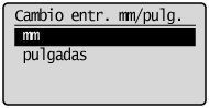 ] para resaltar <Cambio de entrada en mm/pulgadas> y, a continuación, pulse [OK].