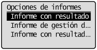 ] para resaltar <Opciones de informes> y, a continuación, pulse [OK].