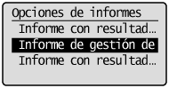 ] para resaltar <Opciones de informes> y, a continuación, pulse [OK].