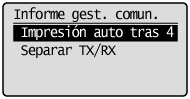 ] o [ ] para resaltar <Separar TX/RX> y, a continuación, pulse [OK]. |