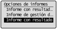 ] para resaltar <Opciones de informes> y, a continuación, pulse [OK].
