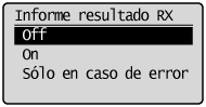 ] para resaltar <Informe con resultado RX> y, a continuación, pulse [OK].