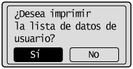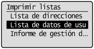 ] para resaltar <Lista de datos de usuario> y, a continuación, pulse [OK].