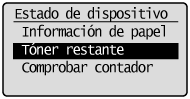 ] para resaltar <Tóner restante> y, a continuación, pulse [OK].