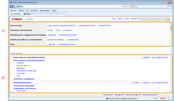Muestra todos los contenidos del e-Manual. Haga clic en un encabezado para ver el tema.