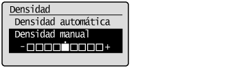 ] o [ ] para ajustar <Densidad manual>, cuando se seleccione <Densidad automática> o <Densidad manual>. |