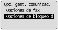 ] para resaltar <Opciones de gestión de comunicaciones> y, a continuación, pulse [OK].