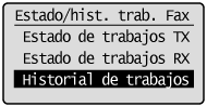 ] para resaltar <Historial de trabajos> y, a continuación, pulse [OK].