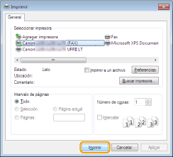 Si se muestra un icono de impresora en la bandeja de tareas situada en la parte inferior derecha de la pantalla, podrá detener el envío de un fax desde el ordenador. Haga doble clic en el icono de la impresora -> haga clic en el nombre del archivo cuyo envío desea detener -> haga clic en [Documentos] -> [Cancelar].