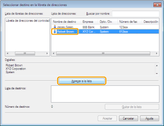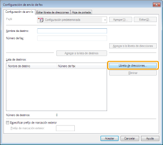 Para obtener una información detallada acerca de cómo registrar direcciones y utilizar la libreta de direcciones, consulte la ayuda en línea consulte "Visualización de la ayuda en línea (PC Fax)."
