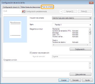 Para obtener información detallada acerca de cómo adjuntar portadas, consulte "Visualización de la ayuda en línea (PC Fax)".