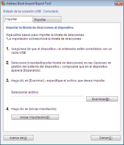 Siga las instrucciones que figuran en la pantalla en la ficha [Importar] Address Book Import/Export Tool.