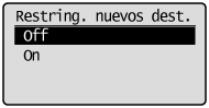 ] para resaltar <Restringir nuevos destinos> y, a continuación, pulse [OK].