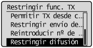 ] para resaltar <Restringir func. TX> y, a continuación, pulse [OK].