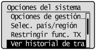 El historial no aparecerá en la pantalla de monitor de estado/cancelar ni en el informe de actividad. Además, el informe de actividad no se imprimirá automáticamente.