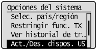 ] para resaltar <Act./Des. dispos. USB> y, a continuación, pulse [OK].