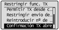 ] para resaltar <Confirmación TX abrev./marc. Codificada> y, a continuación, pulse [OK].