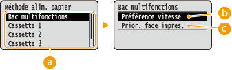 <Préférence vitesse> ou <Prior. face impres.>