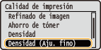Seleccione <Densidad (Aju. fino)>, y pulse