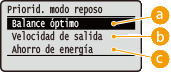 Este elemento está disponible si <Modo reposo> está configurado como <Alto (Reposo)>. Paso al modo de reposo
