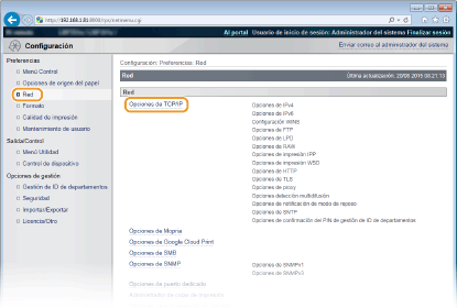 Haga clic en [Red]  [Opciones de TCP/IP].