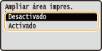Si selecciona <Activado>, pueden faltar algunas partes de la imagen cerca del margen del papel, o el papel puede quedar parcialmente manchado en función del original.