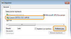 Seleccione este equipo y haga clic en [Preferencias] o [Propiedades].