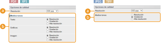 Los bordes de los caracteres y gráficos se pueden reproducir claramente a alta resolución. Este modo de impresión es adecuado para imprimir datos que contengan muchos caracteres pequeños.