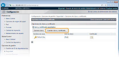 Haga clic en [Guardar clave y certificado] o [Guardar certificado de CA].