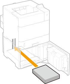 Carregue o papel de modo que a borda distante da pilha de papel esteja em contato com o lado traseiro do bandeja de papel.