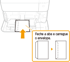 Esta seção descreve como carregar envelopes na orientação desejada, assim como os procedimentos que precisam ser concluídos antes de carregar envelopes. Para uma descrição do procedimento geral de carregamento de envelopes na bandeja multiuso ou no alimentador de envelopes opcional, consulte o seguinte.