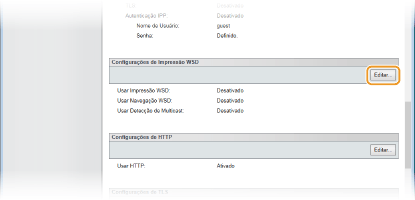 Clique em [Editar] em [Configurações de Impressão WSD].