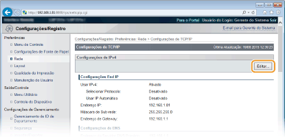Digite o endereço IP de um servidor DNS. Você também pode definir o endereço IP no painel de operação (Configurações IPv4). [Endereço do Servidor DNS Secundário]