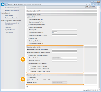 Marque a caixa de seleção para atualizar dinamicamente os registros de DNS sempre que o endereço IP da máquina é alterado. [Configurações de mDNS][Usar mDNS]