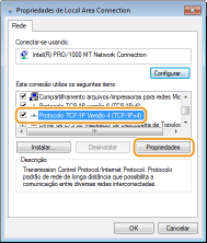 Marque a caixa [Protocolo TCP/IP Versão 4 (TCP/IPv4)] ou [Protocolo de Internet] e clique em [Propriedades].