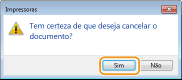 Cancelando a partir de um aplicativoEm alguns aplicativos, uma tela como a mostrada abaixo é exibida. Você pode cancelar a impressão clicando em [Cancelar].