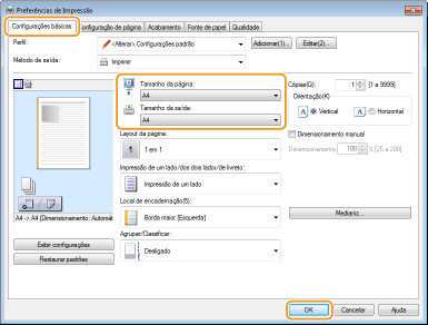 As configurações de ampliação/redução em alguns aplicativos possuem prioridade sobre as configurações do driver de impressora.