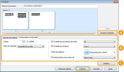 Altere as configurações conforme o necessário e clique em [Combine] (Combinar).