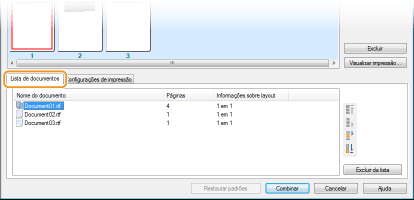 Usando o Canon PageComposer, você pode combinar múltiplos documentos em um trabalho de impressão e imprimi-lo com as configurações de impressão especificadas. Esta função, por exemplo, permite-lhe combinar documentos feitos em diferentes aplicativos e imprimir todas as páginas no mesmo tamanho de papel.